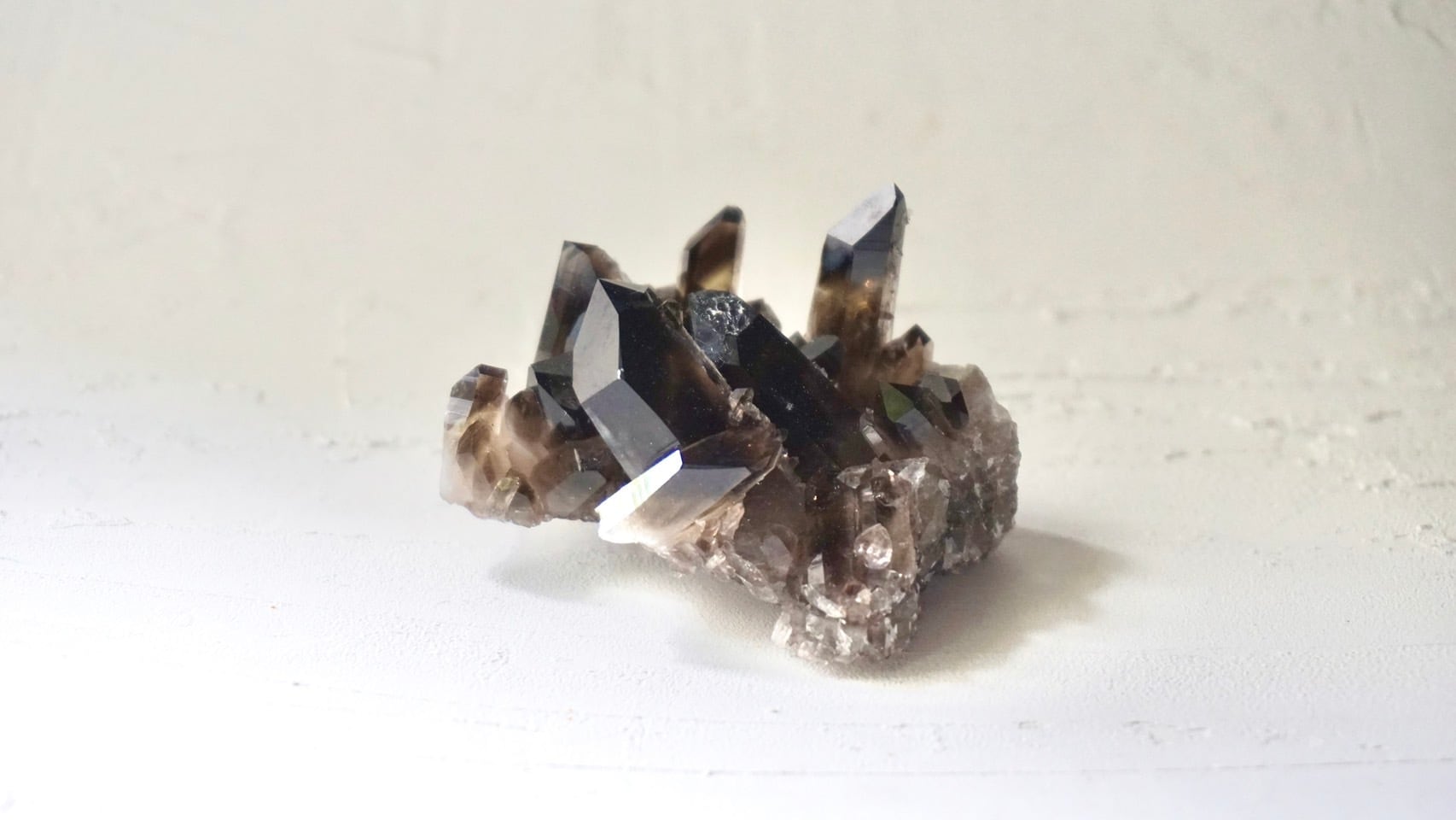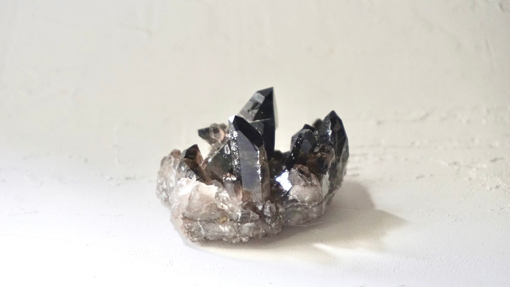 アーカンソー産水晶のとても美しい照りに微細なアルミ成分が艶のある黒色となるため、
