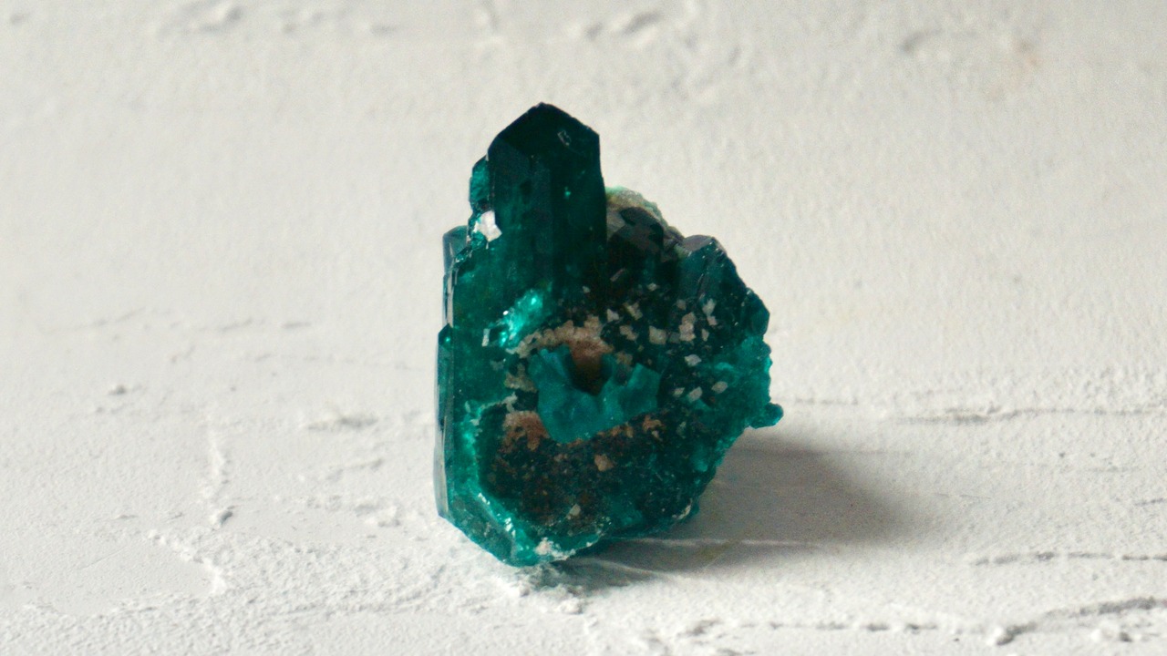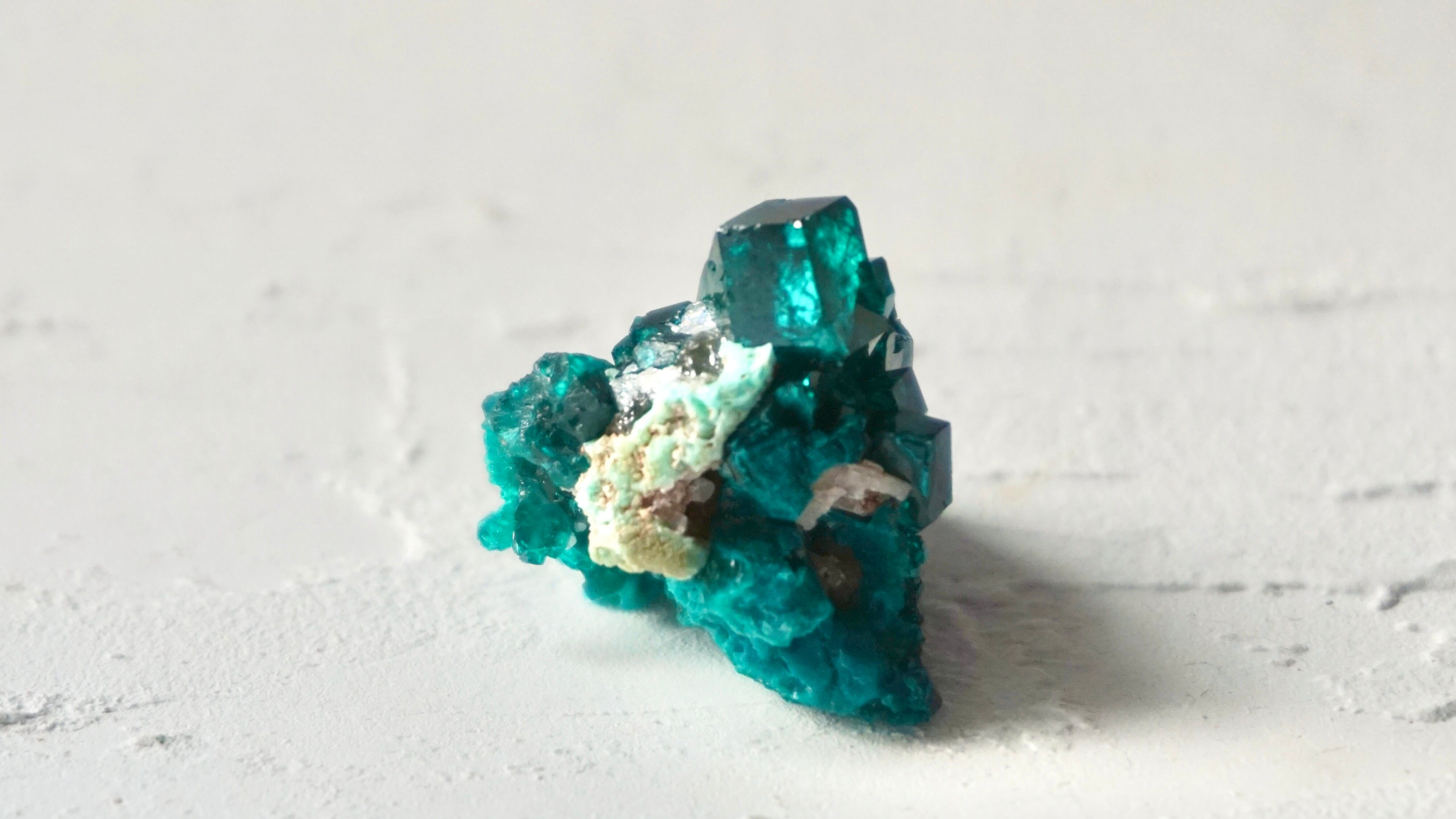 銅に由来する、独特の鮮やかなブルーグリーンが特徴で、過去にはエメラルドと間違われていたそうですが、この深い色合いはダイオプテーズらしい美しさです。