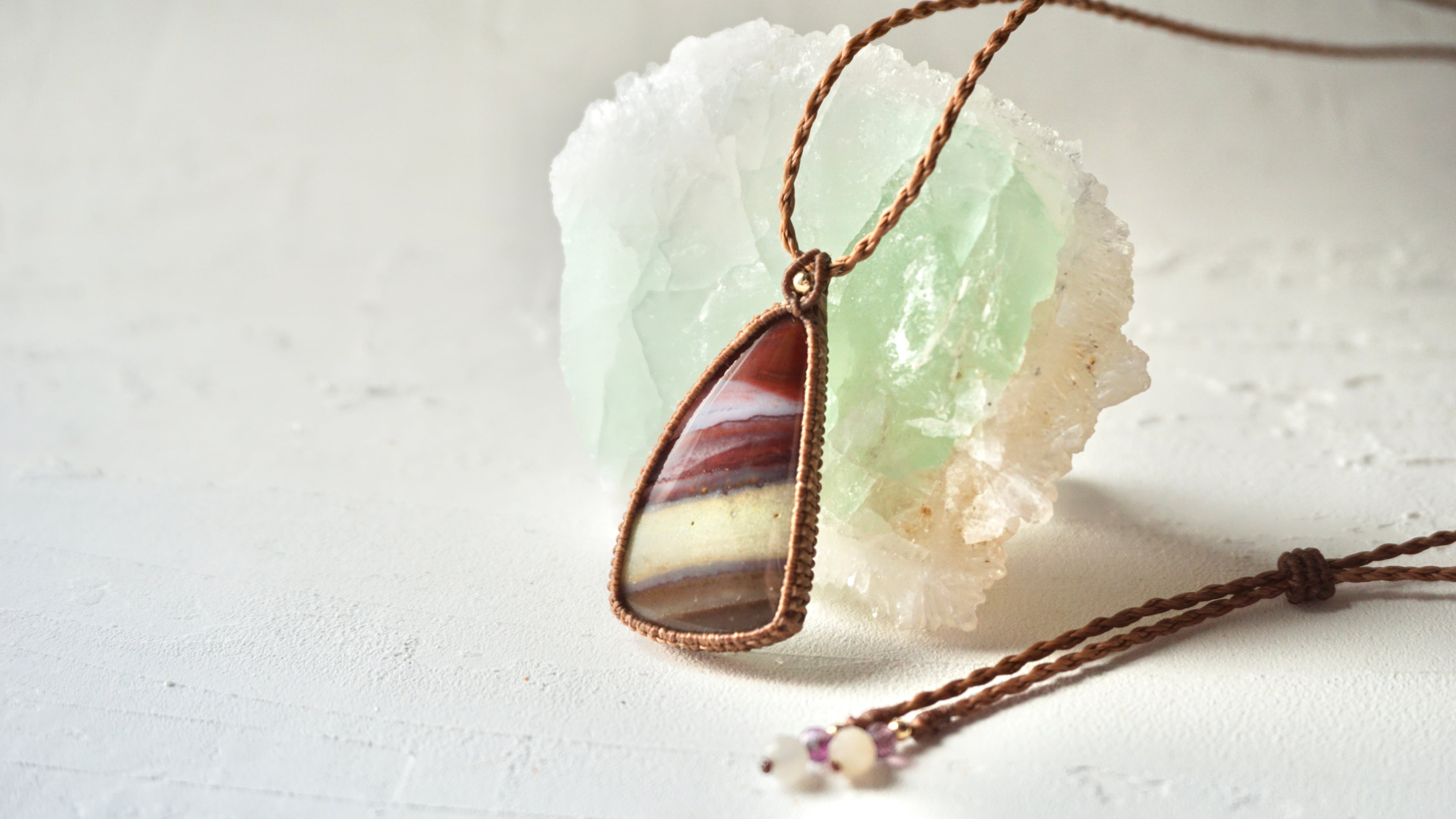 ※マクラメの特性上焼き止めの跡が残ります。目立たない箇所で行う様デザインしておりますが、予めご了承ください。