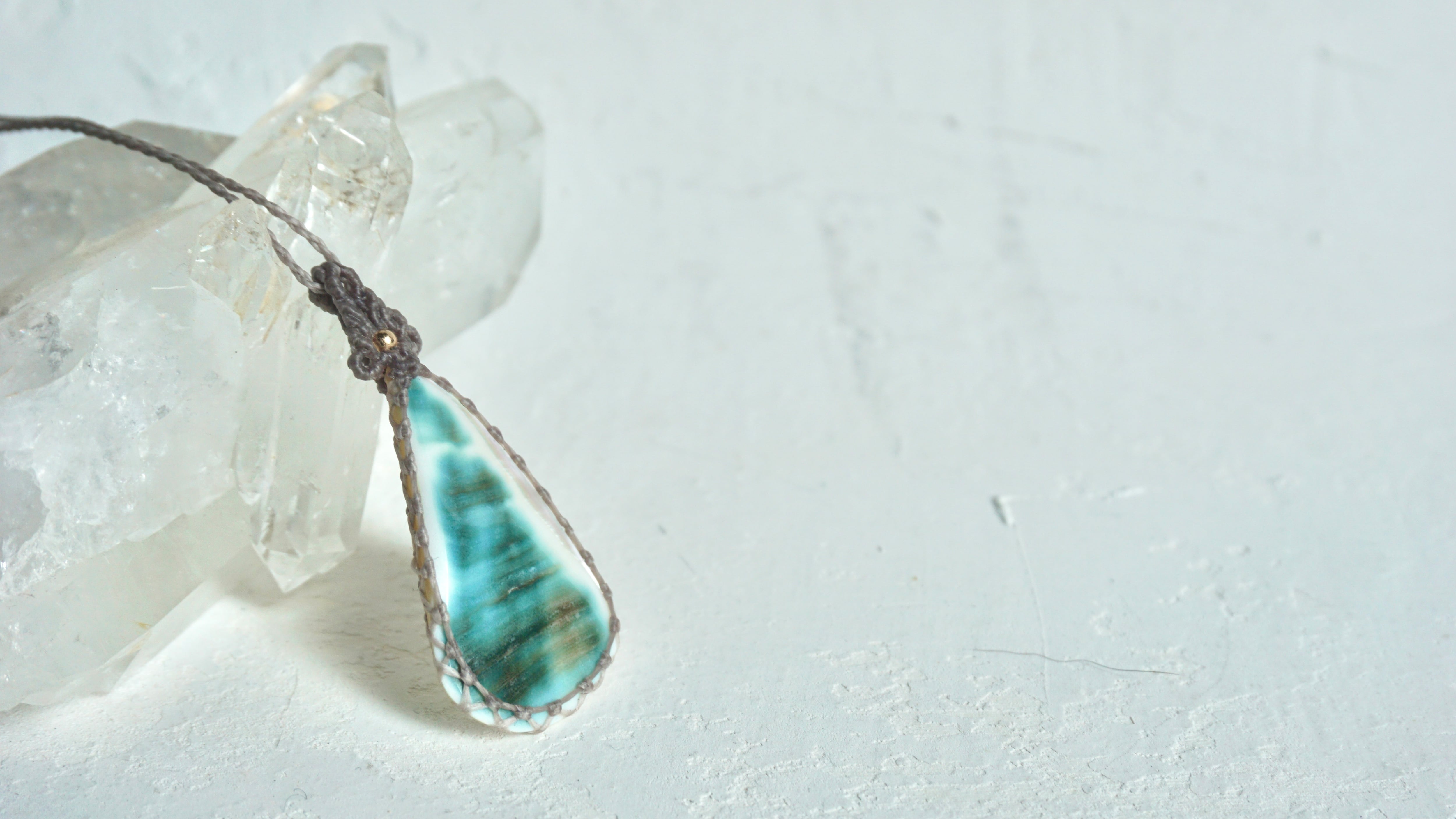 ※マクラメの特性上焼き止めの跡が残ります。目立たない箇所で行う様デザインしておりますが、予めご了承ください。