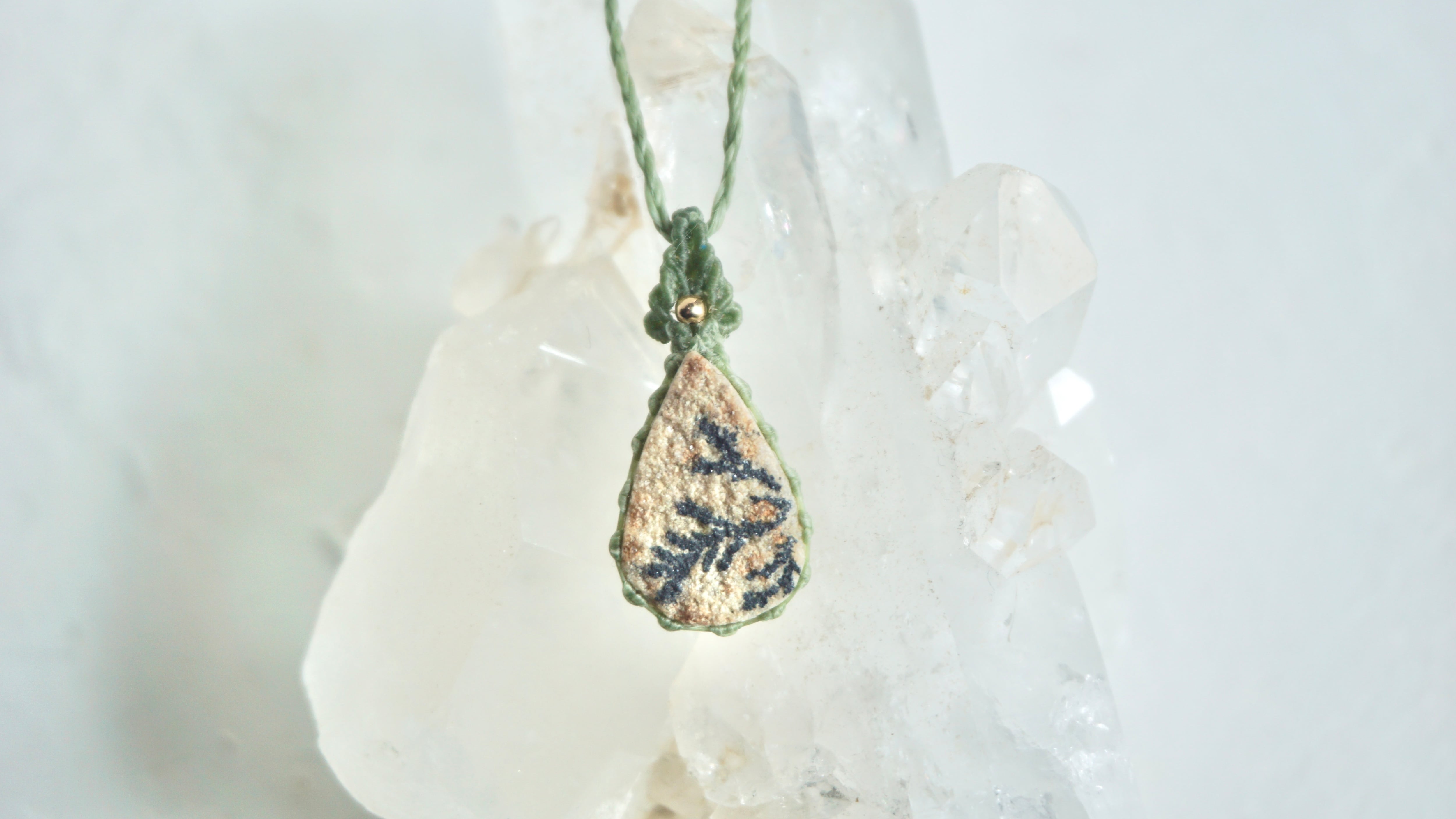 デンドライトライムストーン…石灰岩(ライムストーン)の隙間にマンガンを内包した水が染み入り、それが結晶化した姿がまるで樹木のように見えた(dendron/ギリシア語)ことから二つの名前が組み合わさりました。