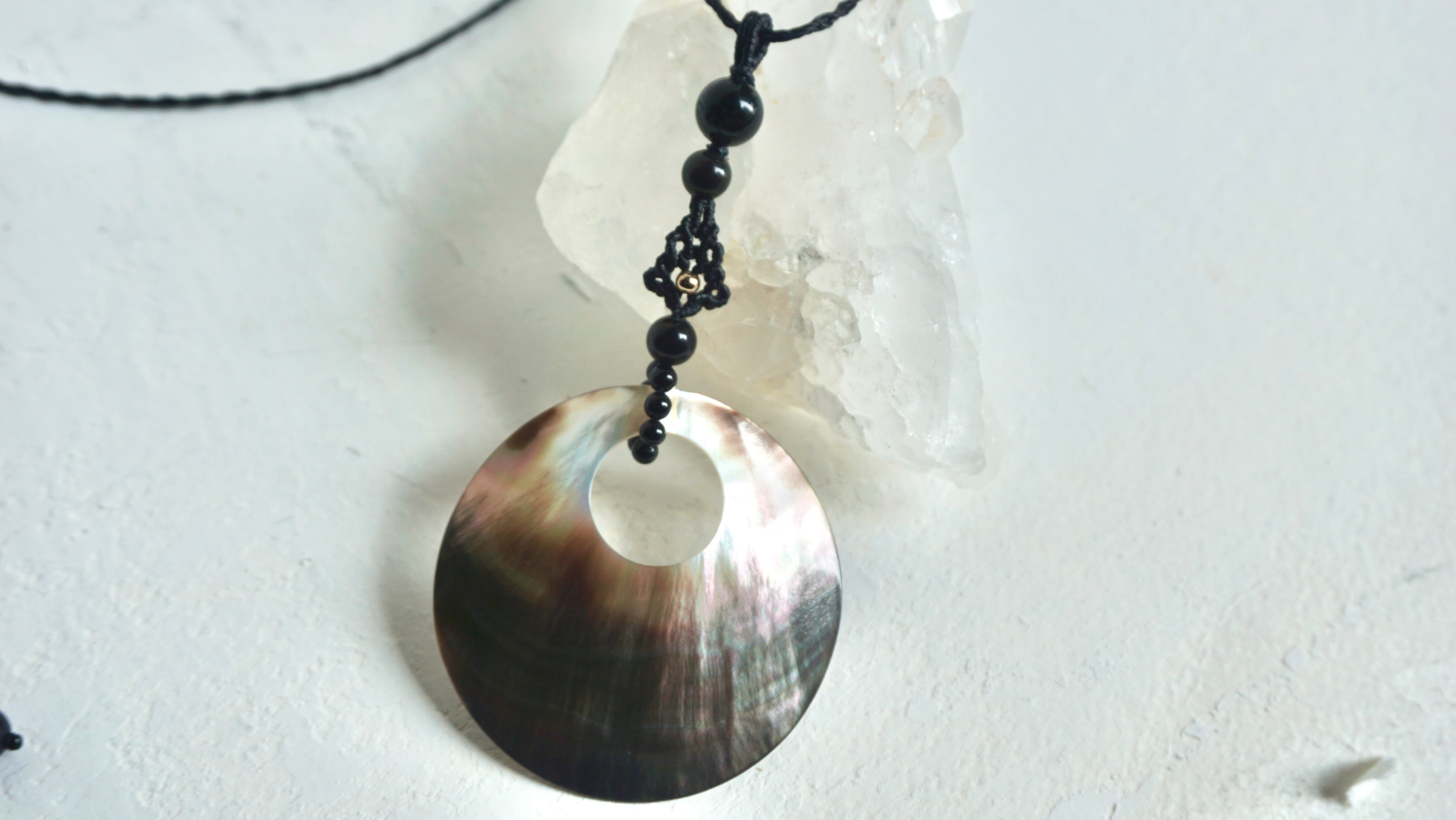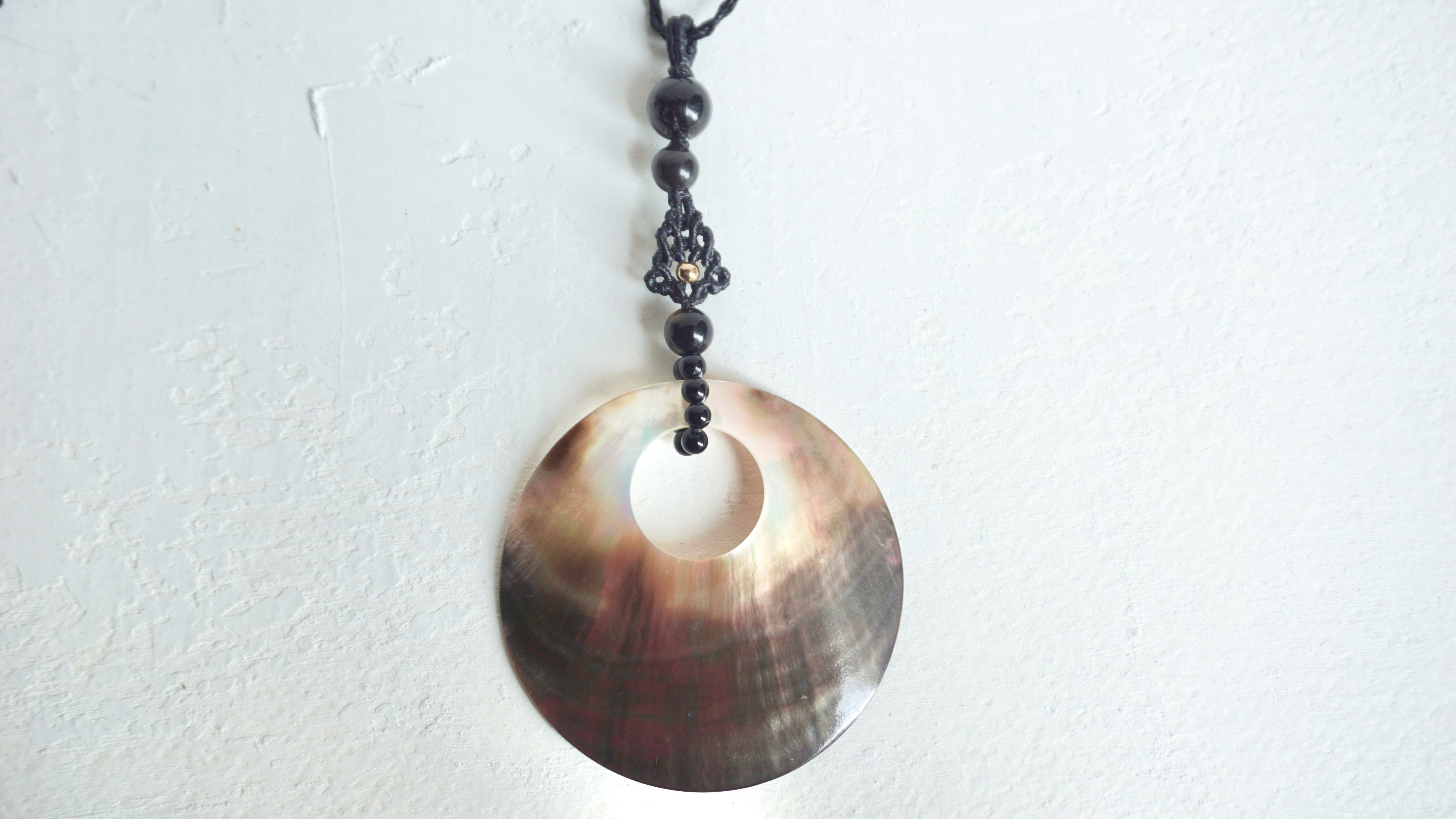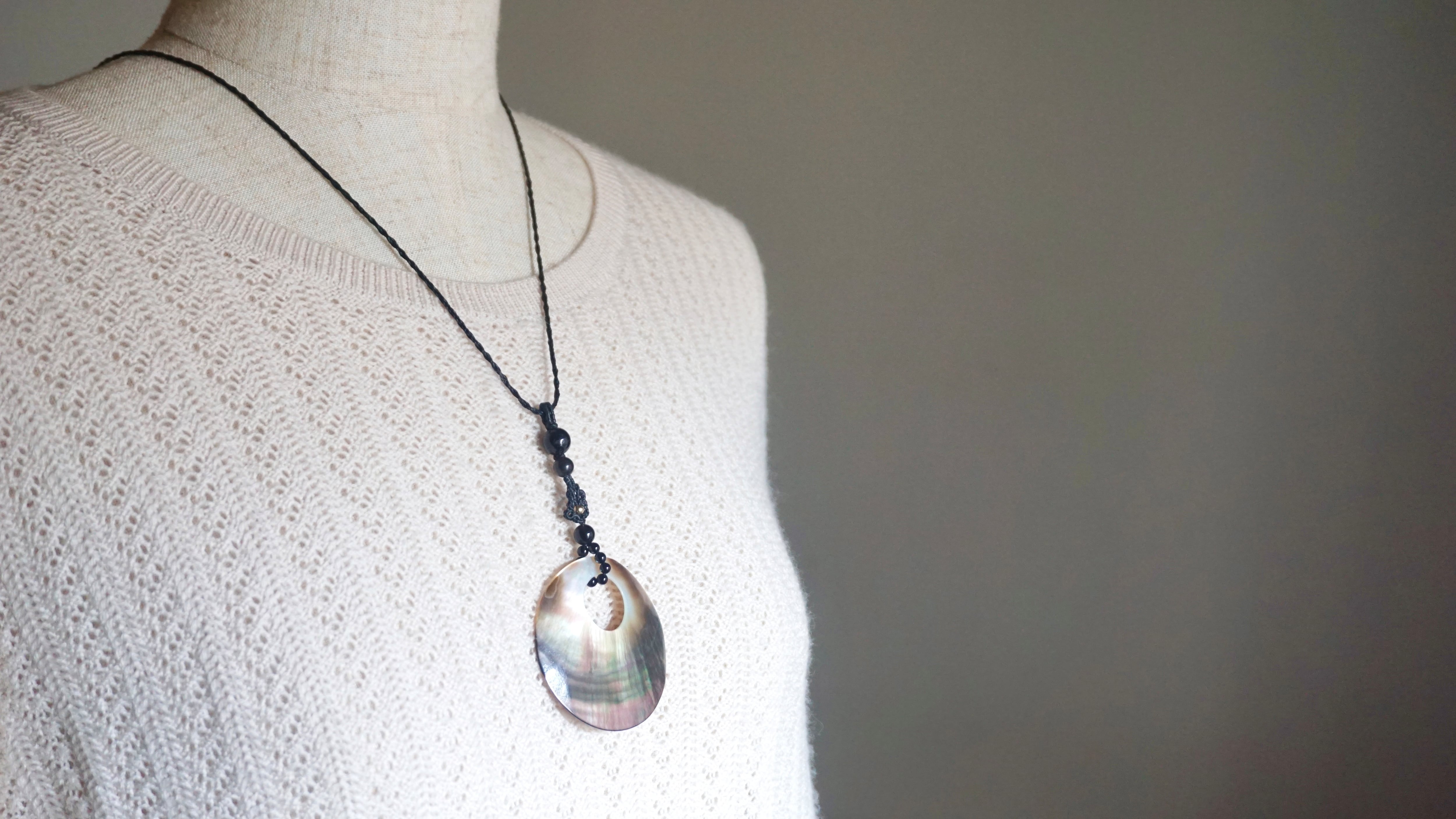 美しく大ぶりの黒蝶貝をネックレスに仕立てました。